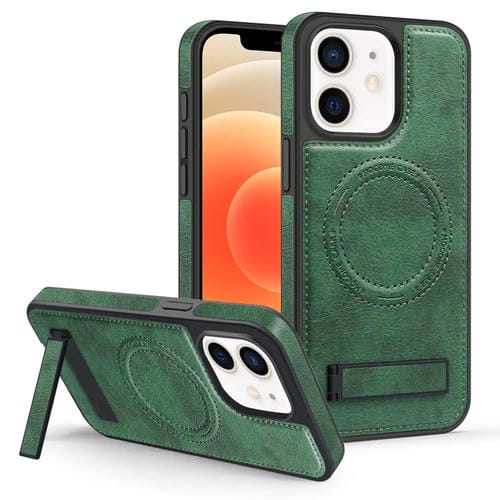 Funda para Teléfono iPhone 12/12 Pro Magsafe Pu con Soporte Multifunción (Verde Oscuro)