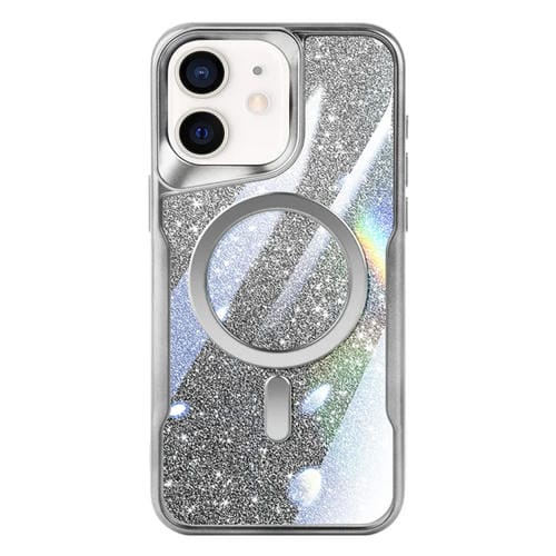 For iPhone 12 Blade MagSafe Magnetic Gradient Glitter Phone Case (Silver White)