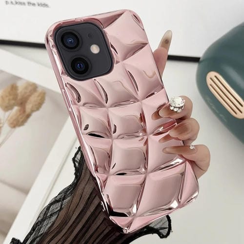 Caja de teléfono TPU iPhone 12 con pintura metálica chapada en cuadros curvos (Rosa)