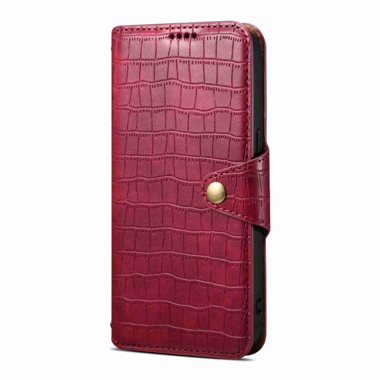 Funda para Teléfono Denior iPhone 12 Cuero Borde de Aceite Textura de Cocodrilo (Rojo Rosa)
