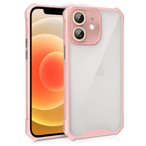 Funda para Teléfono iPhone 12 Acrílico a Prueba de Golpes con Película de Vidrio para Lentes (Rosa)