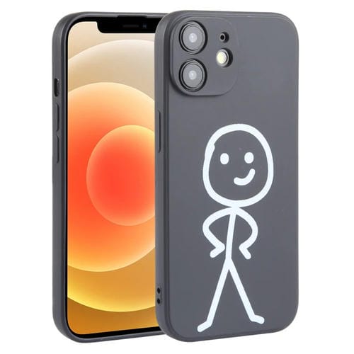 Funda de Teléfono Silicona Líquida para iPhone 12 con Patrón Stickman (Negro)