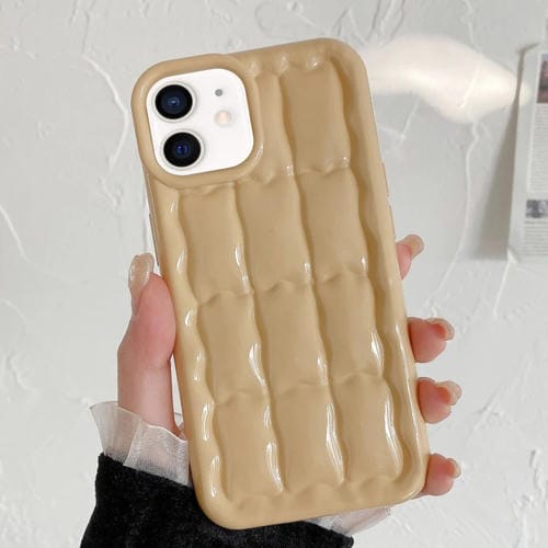 Funda de teléfono TPU iPhone 12 textura de rejilla 3D (Caqui)