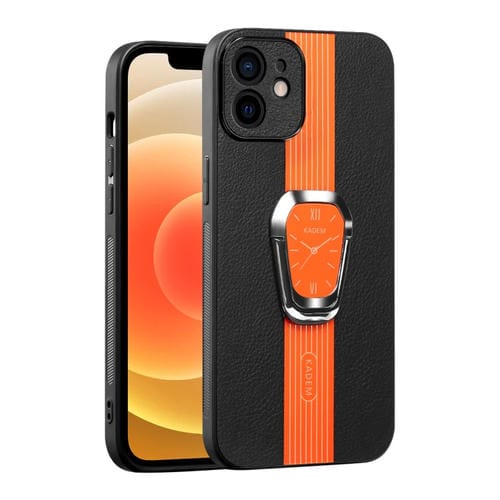 Funda Magnética para Teléfono iPhone 12 con Parte Trasera de Cuero Litchi y Soporte (Naranja)