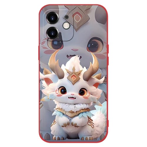 Funda para Teléfono iPhone 12 Silicona a Prueba de Golpes (Roja) (Dragón Blanco)