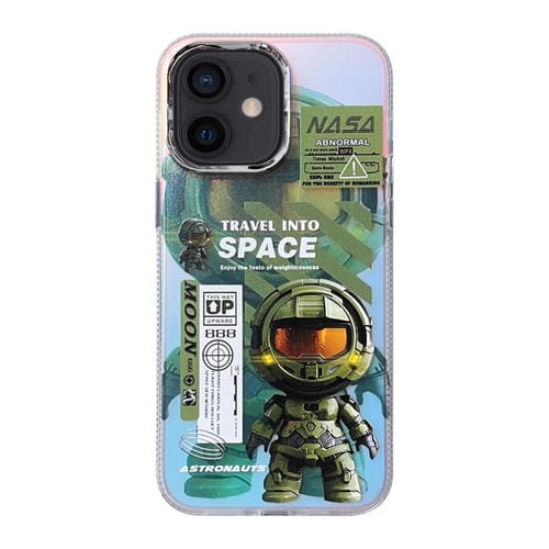 Funda para Teléfono iPhone 12 Astronauta Láser Fluorescente (Verde Militar)
