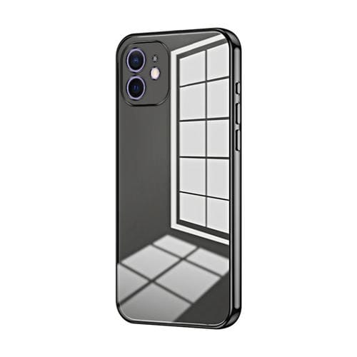 Funda para Teléfono iPhone 12 Orificio Fino Revestimiento Transparente (Negro)