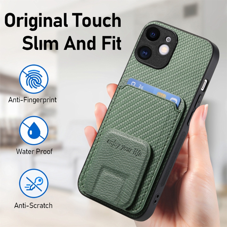 Funda para Teléfono iPhone 12 con Soporte Plegable y Bolsa para Tarjetas Fibra de Carbono (Verde)