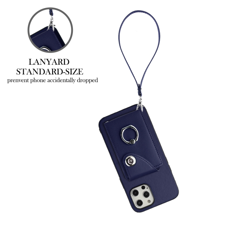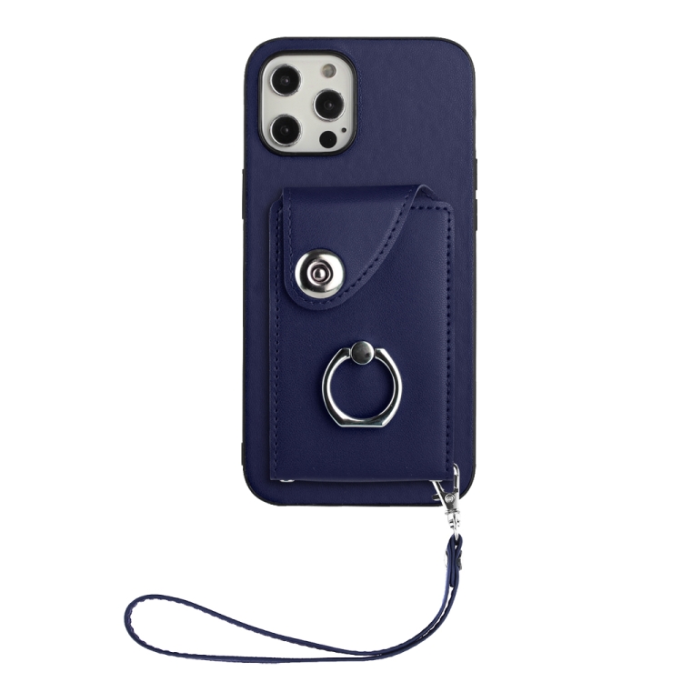 Funda para Teléfono iPhone 12 de PU con Soporte para Anillo y Bolsa para Tarjeta con Cordón (Azul)