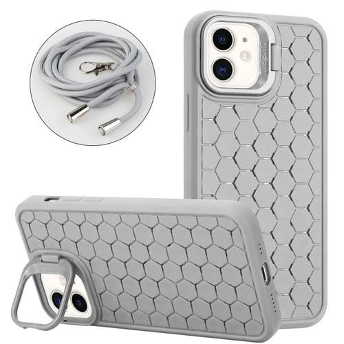 Funda para Teléfono TPU para iPhone 12 con Soporte Radiante de Panal y Cordón (Gris)
