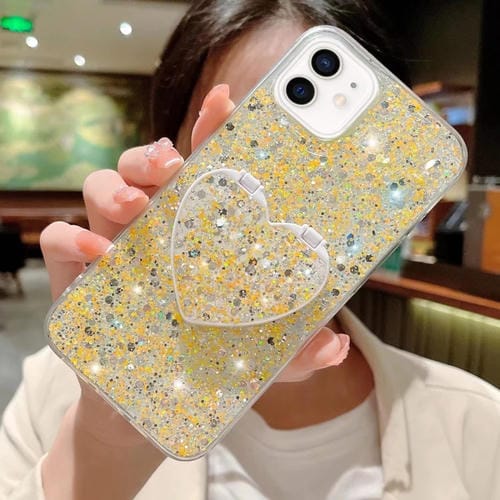 Funda para Teléfono TPU Epoxi iPhone 12 Soporte Espejo Lentejuelas Estrelladas (Amarillo)
