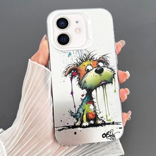 Pour iPhone 12 IMD Animal Graffiti TPU + PC Étui de téléphone double face (chien orange vert fondu)