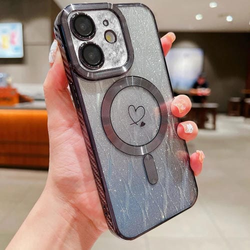Funda para Teléfono iPhone 12 Loves Leaves Gradient Glitter Fibra de Carbono Magsafe TPU (Negro)