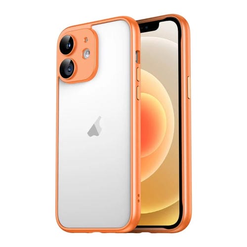 Funda para iPhone 12 Macaron PC Marco de Borde Puro con Película de Vidrio para Lentes (Naranja)