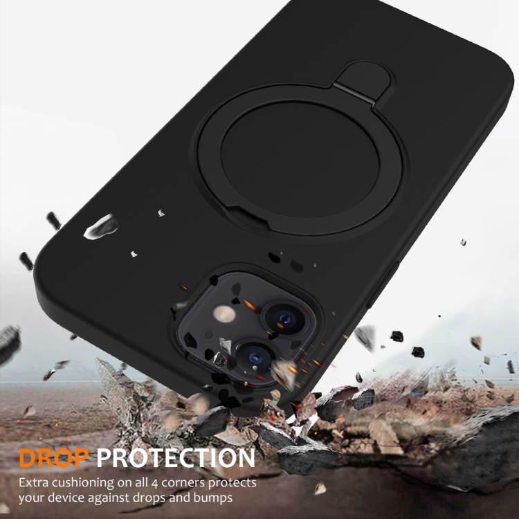 Funda para Teléfono iPhone 12 Magsafe Silicona Líquida Magnética con Soporte para Anillo (Negro)