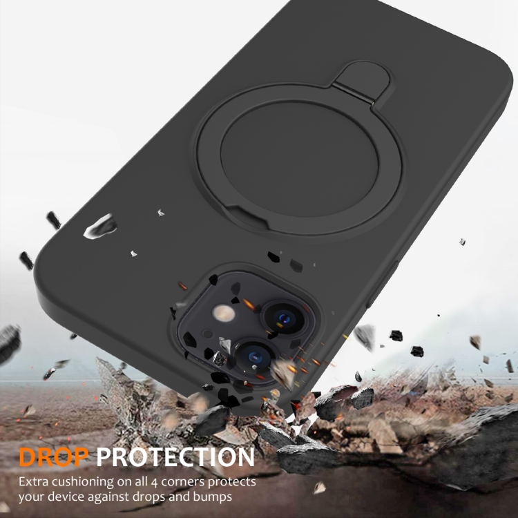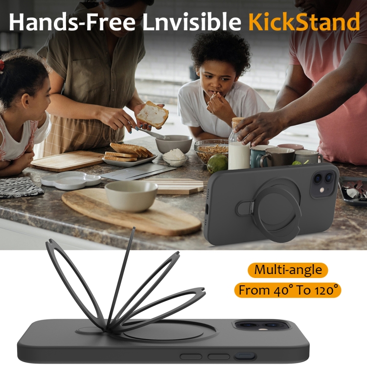 Funda para Teléfono iPhone 12 Magsafe Silicona Líquida Magnética con Soporte para Anillo (Negro Carbón)