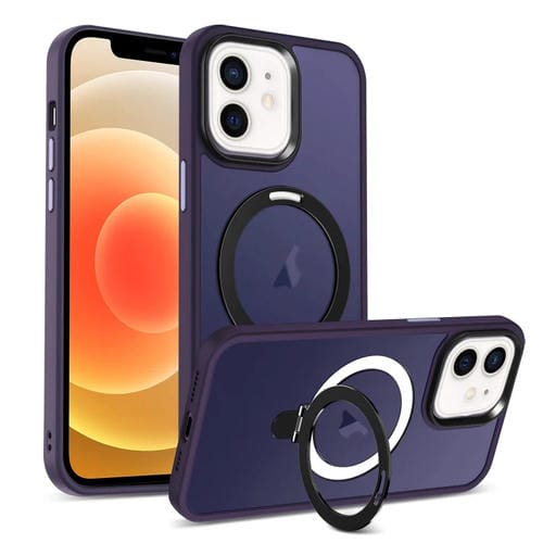 Funda para Teléfono iPhone 12 Magsafe Holder Skin-Feel PC Hybrid (Púrpura Oscuro)