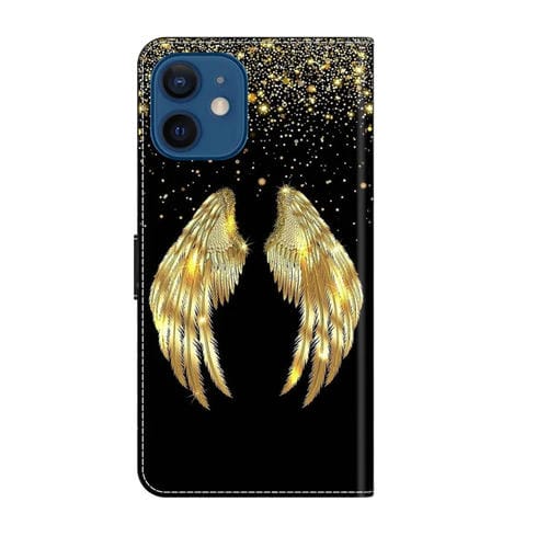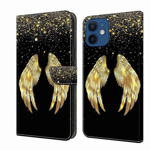 Funda Protectora de Cuero para iPhone 12 Mini y 13 Mini Crystal 3D a Prueba de Golpes (Alas Doradas)