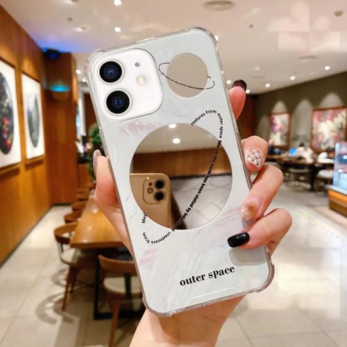 Caja de teléfono para iPhone 12 Mini con Espejo Pintado a Color (Espacio Exterior)