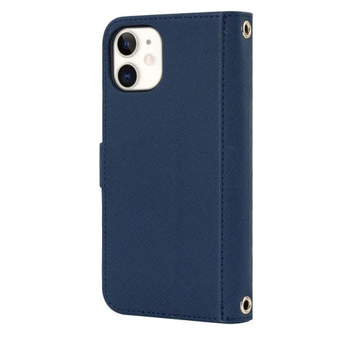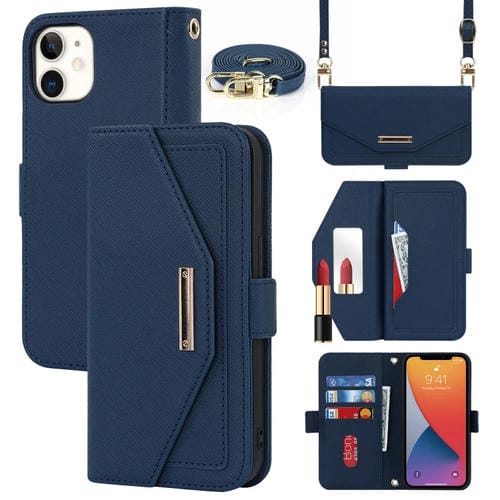 Funda para iPhone 12 Mini Cross Texture Lanyard Leather Phone Case (Azul)