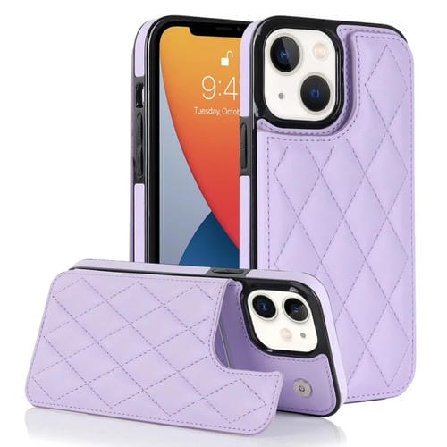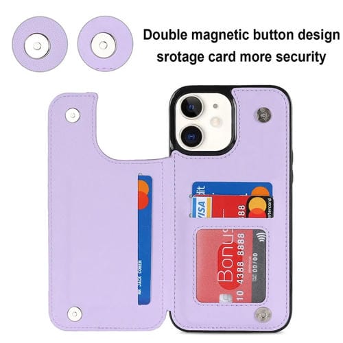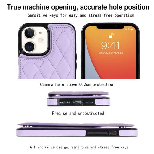 Funda de teléfono iPhone 12 Mini Doble Hebilla Cuero PU Rombal (Púrpura)