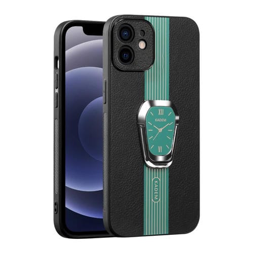 Estuche magnético para teléfono iPhone 12 Mini con parte Trasera de cuero Litchi y soporte (Verde)