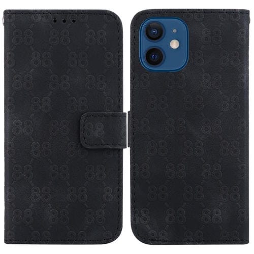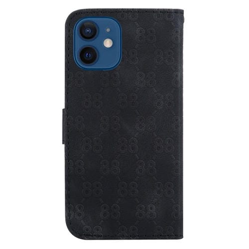 Estuche para teléfono iPhone 12 Mini de cuero en relieve con doble forma de 8 (Negro)