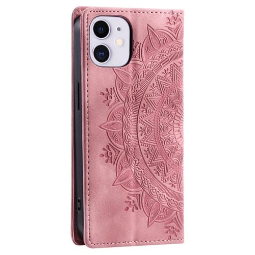 Estuche para Teléfono iPhone 12 Mini Cuero Magnético con Relieve de Tótem (Oro Rosa)