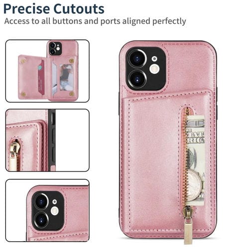 Funda para iPhone 12 Mini con Cremallera y Tarjetero (Oro Rosa)