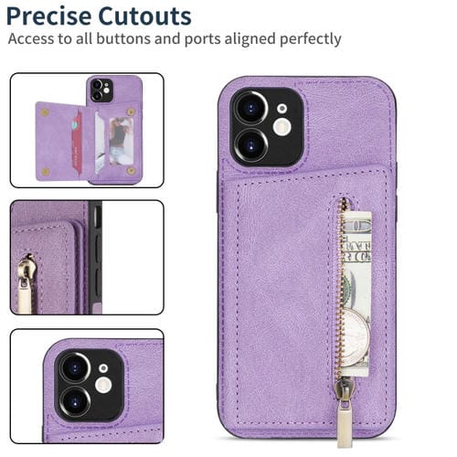 Funda para iPhone 12 Mini con Cremallera y Tarjetero (Púrpura)