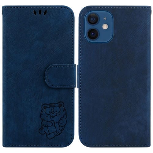 Funda de Cuero para iPhone 12 Mini con Relieve Little Tiger (Azul Oscuro)