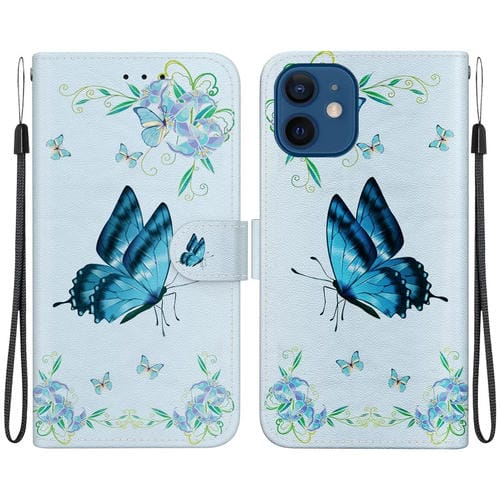 Funda de Cuero para Teléfono iPhone 12 Mini Dibujo Coloreado Textura de Cristal (Azul)