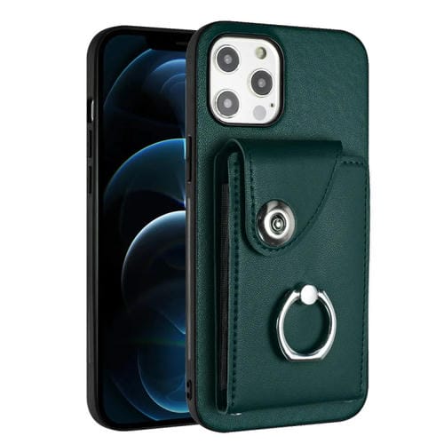 Funda para Teléfono iPhone 12 Mini con Soporte para Anillo y Bolsa para Tarjeta (Verde)