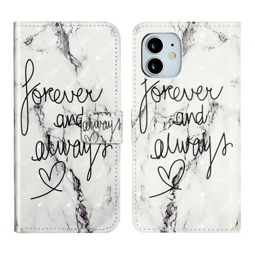 For iPhone 12 mini 3D Embossed Oil Painting Leather Phone Case (Marble Words)