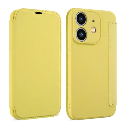 Funda para teléfono iPhone 12 Mini imitación cuero con sensación piel líquida y ranuras para tarjetas (Amarillo)