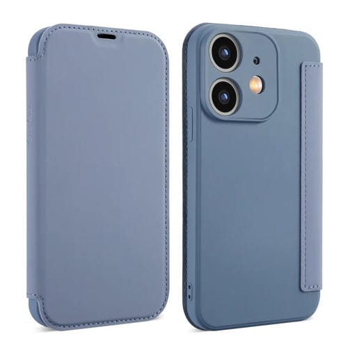 Funda para Teléfono iPhone 12 Mini Imitación Cuero con Sensación de Piel Líquida y Ranuras para Tarjetas (Gris)