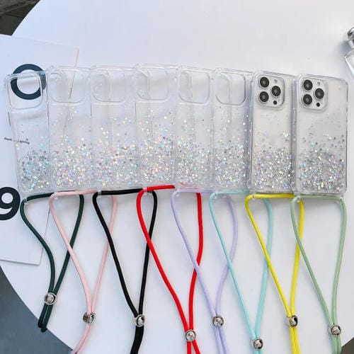 Funda para iPhone 12 Mini Lanyard Glitter Epoxy Clear Phone Case (Amarillo)
