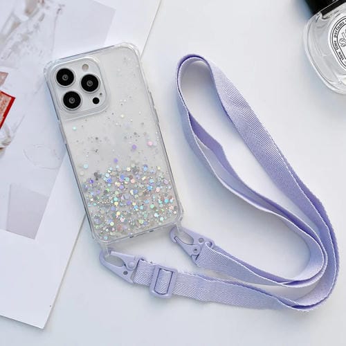 Funda para iPhone 12 Mini Lanyard Glitter Epoxy Clear Phone Case (Púrpura)