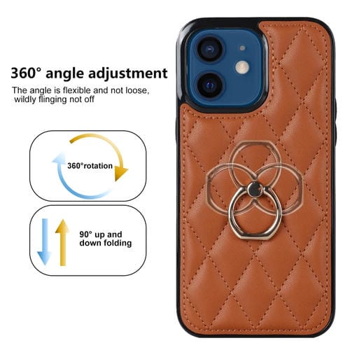 Funda para iPhone 12 Mini Rhombic PU Cuero con Soporte para Anillo (Marrón)