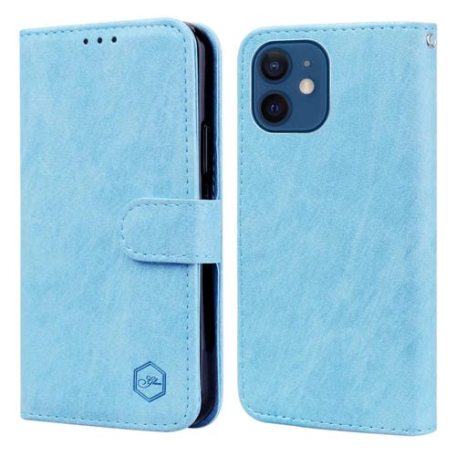 Funda para teléfono iPhone 12 Mini Textura de Cuero Aceitoso PU + TPU (Azul Claro)