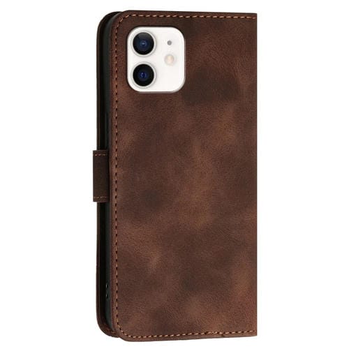 Funda de Cuero Yx0080 para iPhone 12 Mini con Tapa Patrón Mariposa y Cuadrícula con Cordón (Café)