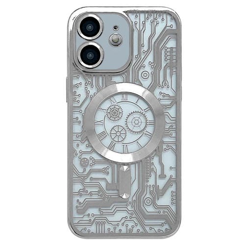 Estuche para Teléfono iPhone 12 Patrón de Placa de Circuito Electrochapado Magsafe (Plata)