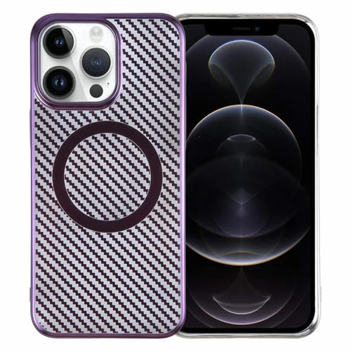 Caja de Teléfono para iPhone 12 Pro PC Magsafe Transparente Fibra de Carbono (Aurora Purple)