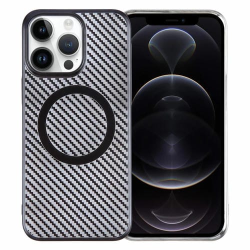 Caja de Teléfono para iPhone 12 Pro 6D PC Magsafe Transparente Fibra de Carbono (Negro Estrellado)