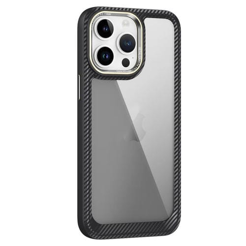 Caja de teléfono para iPhone 12 Pro con panel posterior Transparente de fibra de carbono (Negro + Negro Transparente)