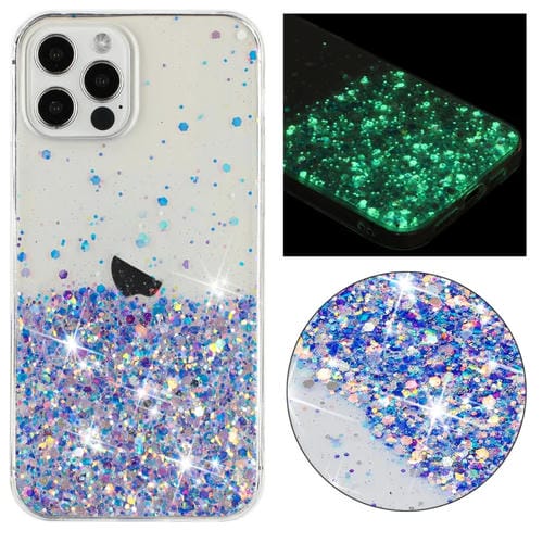 Funda para iPhone 12 Pro TPU con Polvo de Brillo Noctilucente Marco Transparente (Púrpura)