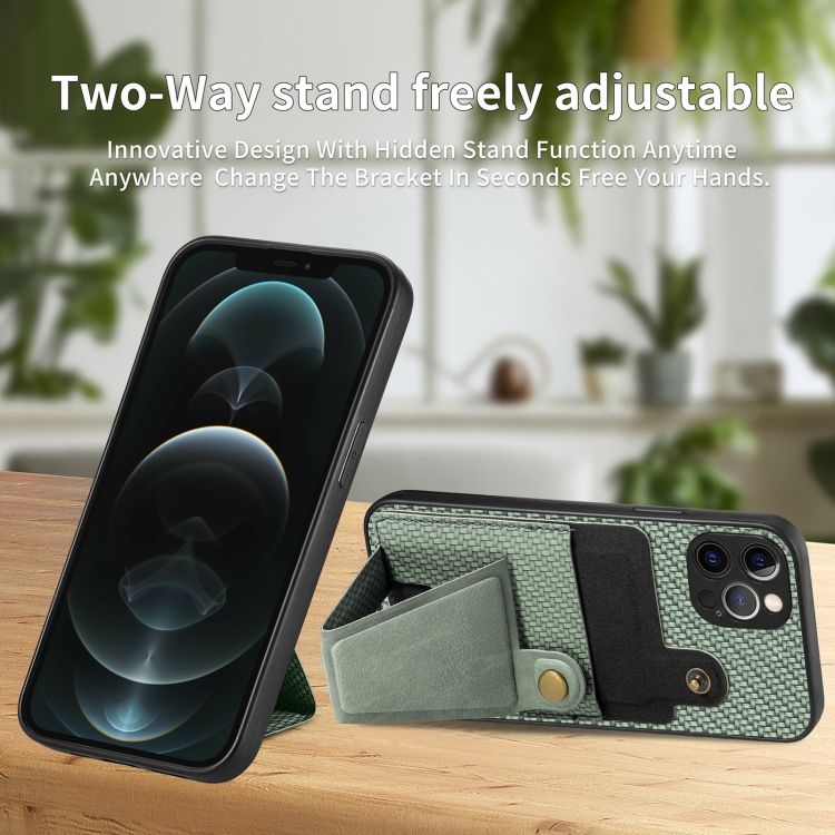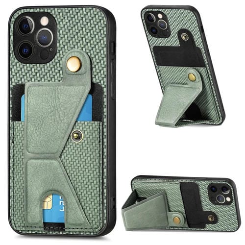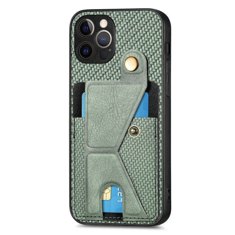 Funda para Teléfono iPhone 12 Pro Carbon Fiber Wallet Flip Card con Soporte en Forma de K (Verde)