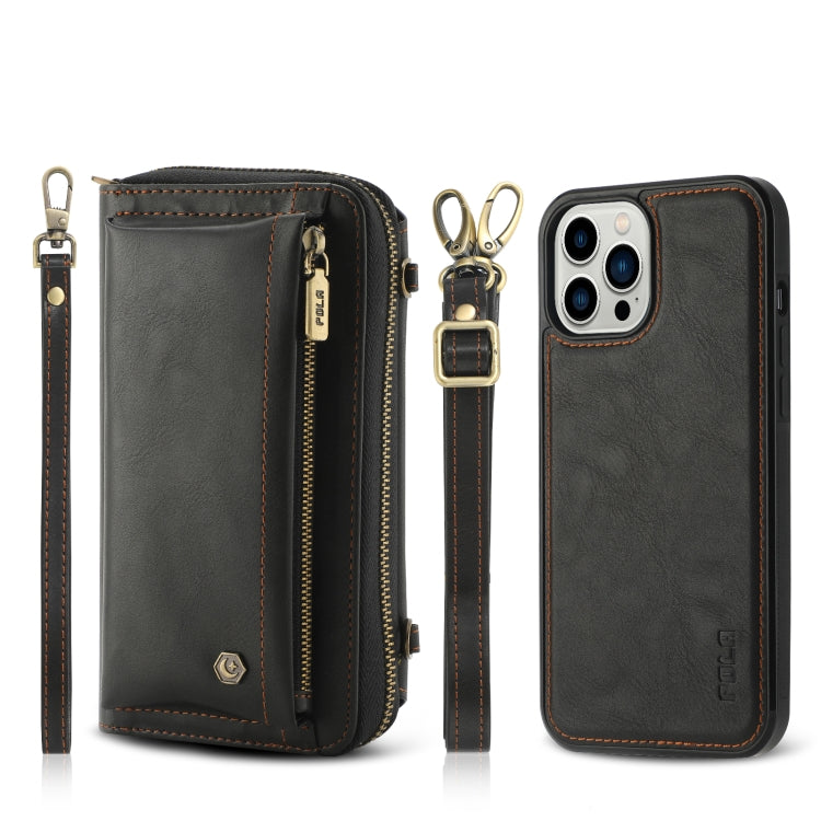 Funda para iPhone 12 Pro Crossbody de Cuero con Billetera y Cremallera Multifuncional (Negro)