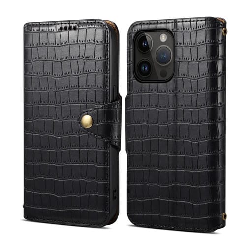 Funda para Teléfono Denior iPhone 12 Pro Cuero Borde de Aceite Textura Cocodrilo (Negro)