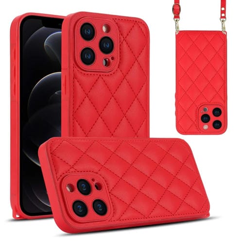 Estuche para Teléfono iPhone 12 Pro Textura Rómbica Cordón Doble (Rojo)